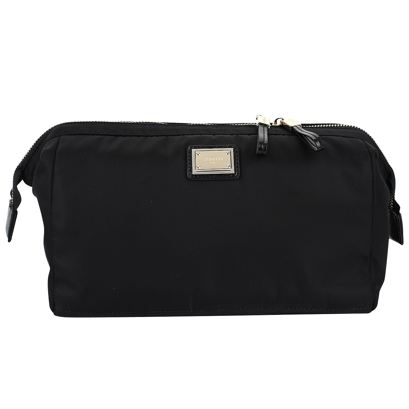 Прочный, немаркий, износостойкий и вместительный женский несессер — незаменимый аксессуар в поездке. Внутри одно просторное отделение на прочной бежевой подкладке с двумя карманами, где поместится косметика, средства гигиены и разная необходимая мелочь. Несессер практичного черного цвета закрывается на двойную молнию.